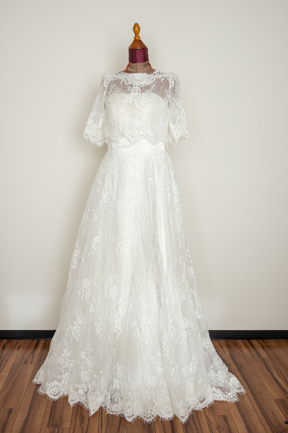 ボレロとセットで着用されても可愛いです。背中の部分は編み上げタイプなので多少のサイズ調整が可能です。