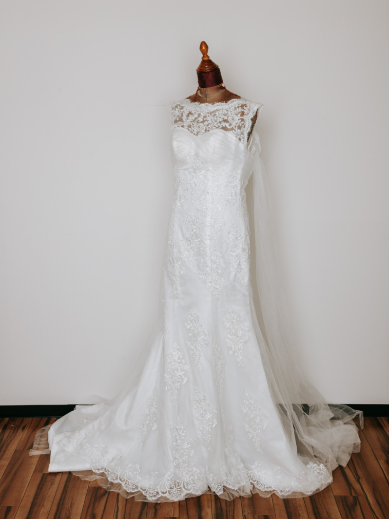 マーメイドタイプのドレス.後ろにチュールが2枚付いています