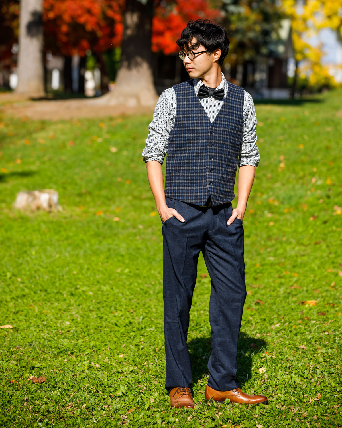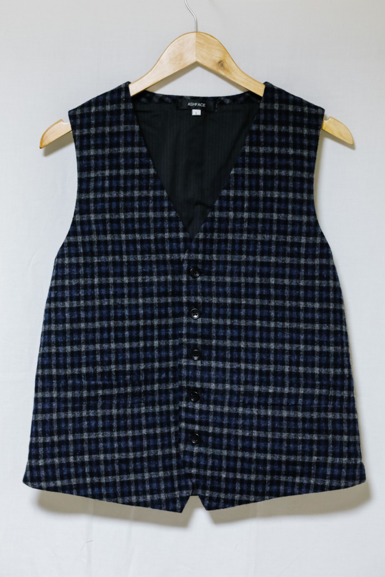 紺色のチェックベスト。