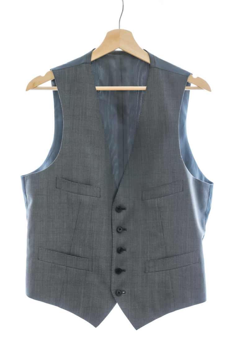 グレーのベストになります。黒のチェック柄シャツなどとも相性が良いです。