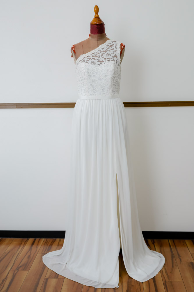 ワンショルダータイプのスリット入りのカジュアルdress。