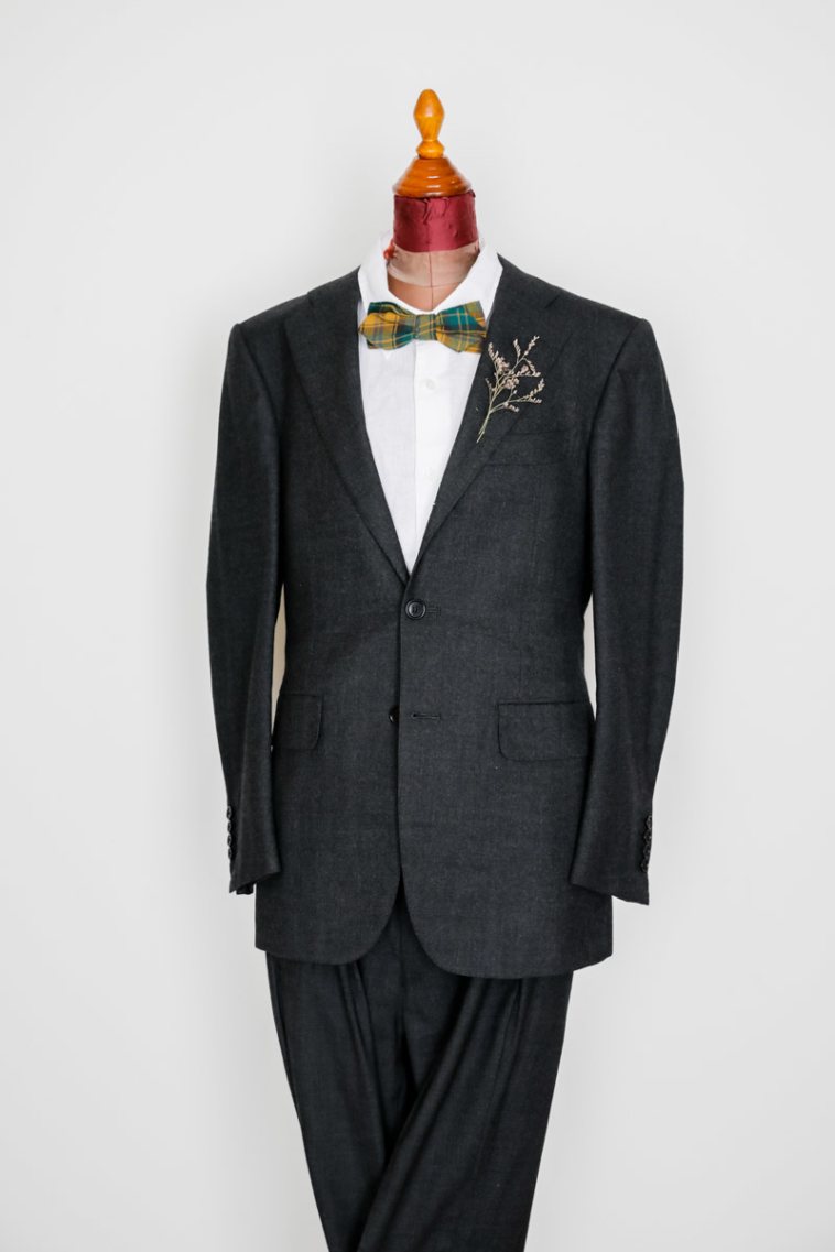 メンズ衣装 N0.13 ロールアップのセットアップスーツ。濃いグレー色で革靴などとも合います。 サイズ: Sサイズ 【ジャケット肩幅】42センチ 【着丈】68センチ 【ズボンウエスト】38センチ 【股下】68センチ 【わたり幅】26センチ
